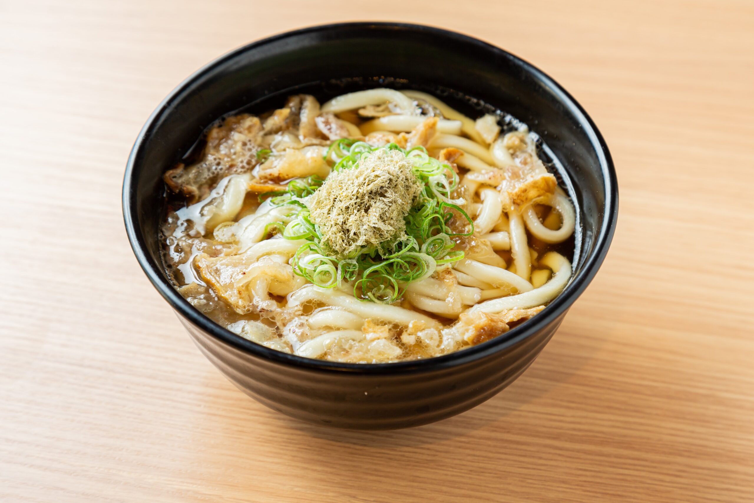 大阪南河内の郷土料理「かすうどん」は牛の小腸をじっくり揚げ乾燥させた油かすが入っており、油かすの上か...
